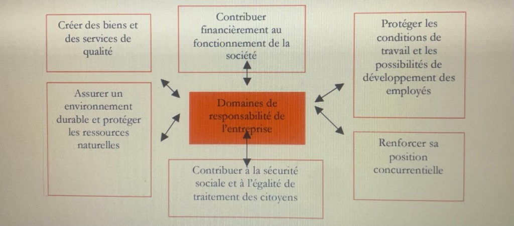 Elle couvre les préoccupations sociales et environnementales qui doivent être intégrées dans la stratégie et les opérations commerciales ;